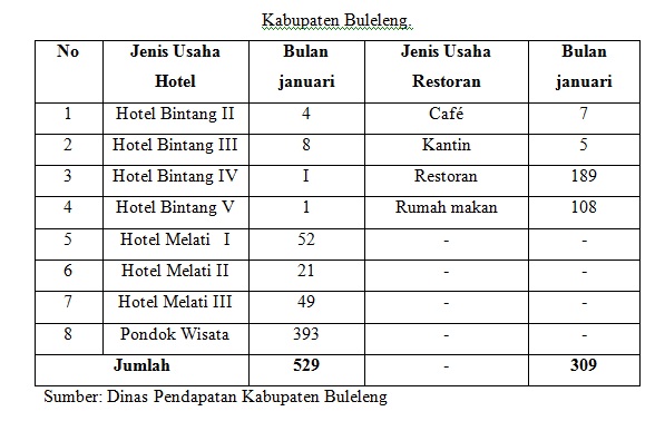 Begitu banyaknya jumlah Hotel dan Restoran yang berada di wilayah Kabupaten Buleleng yang memberikan kontribusi begitu besar bagi pembangunan daerah merupakan tugas utama yang menjadi kewenangan Dinas Pendapatan Daerah untuk memanfaatkan dan menggali potensi yang ada agar dapat meningkatkan Pendapatan Asli Daerah terutama pengenaan  pajak kepada wajib pajak khususnya yang bergerak di sektor pariwisata baik itu Hotel dan Restoran.